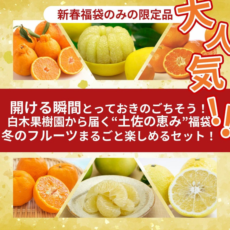 新春福袋は毎年の楽しみのひとつです。 ほかの土佐文旦も取り寄せた事がありますが、 白木果樹園さんが1番美味しいと思ってます。