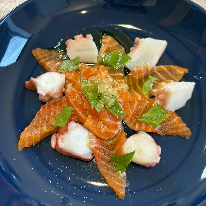 お家でも簡単フィンガーライムカルパッチョ) 海鮮サラダ、ステーキ、握り寿司