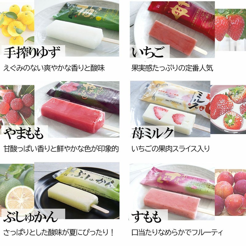 ・フルーツアイスキャンデー(苺とミルク・苺・柚子・すもも・やまもも・四万十ぶしゅかん)×(各80ml×2本) 合計12本セット