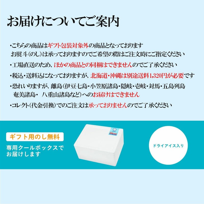 お届け先が北海道の場合は1個口につき1,500円、沖縄・離島の場合は1個口につき1,700円の別途遠方送料が必要です。