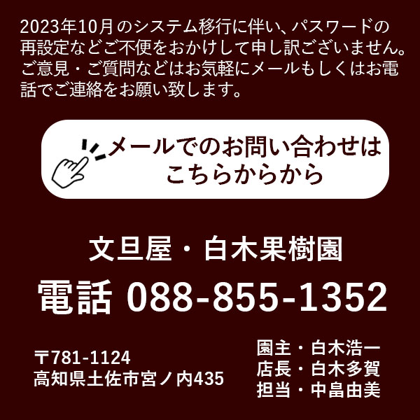 特に当店の主力商品である四季折々の文旦(土佐文旦・夏ぶんたん・水晶文旦・温室土佐文旦)は、おかげ様でたくさんのご予約をいただきますが、1日の発送量には限りがありますので、ご予約をいただいたとしても発送解禁後お届けまでにお時間がかかっております。