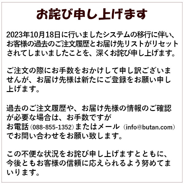 ・ドメイン指定受信許可設定をされている場合は、当店からのメールをお受け取りいただくために【@buntan.com】を許可リストにご登録下さいますよう、お願い致します。