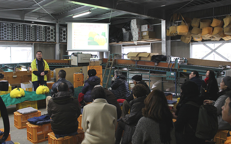 文旦魂に燃える園主が語る文旦ストーリーや奥深い話に、参加者の皆さんも熱心に耳を傾けられます。