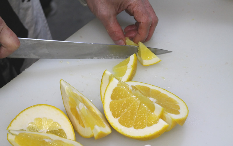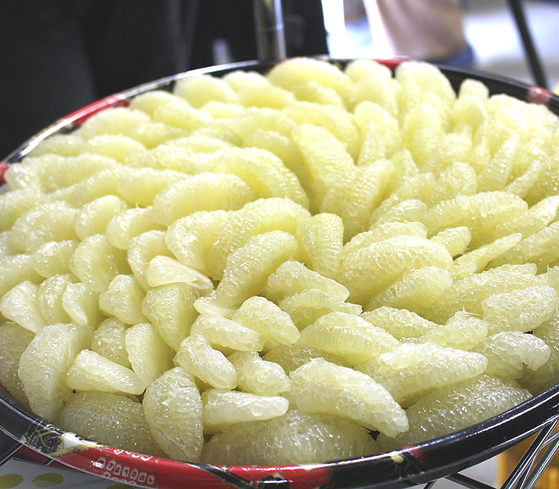 次から次へと、美しい三角カッティングの文旦類が皆さんに振舞われます。