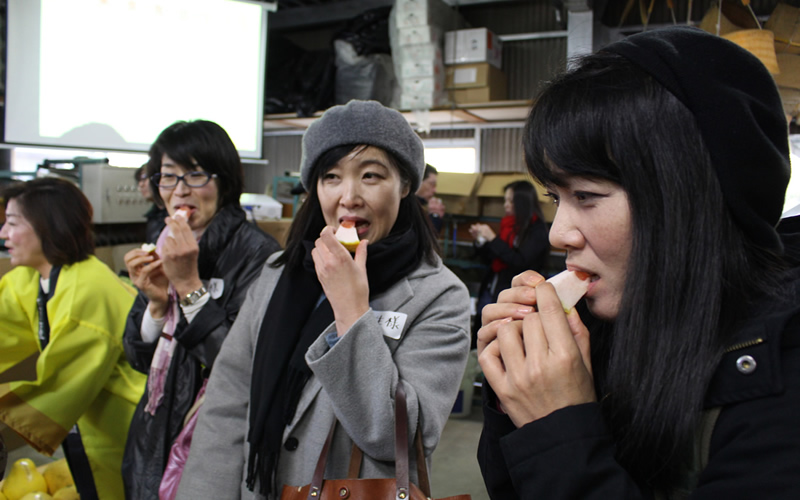通常は白木果樹園のスタッフしか味わえない格別の甘味に、皆さん大興奮!おかわり続出であっという間になくなります。