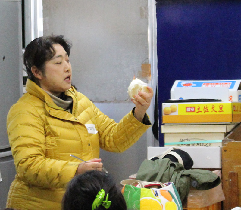 また、”文旦好き”が高じ、各所で文旦ムキムキ教室を開かれている松田雅子さんによる、美しい文旦のむき方教室も同時開催。