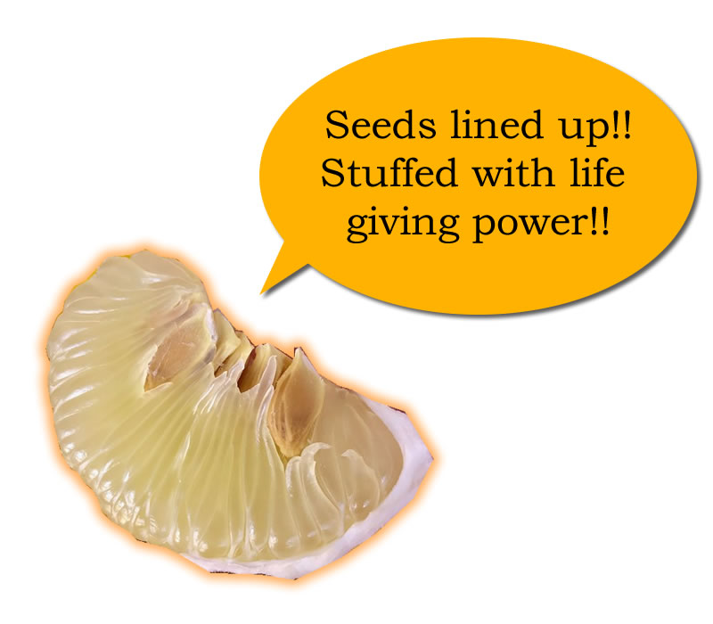 Buntans have many seeds. Some people think they are "too troublesome to eat". But those seeds are proof that the fruit has filled itself with the grounds nutrients, so that it may continue with the next generation.
