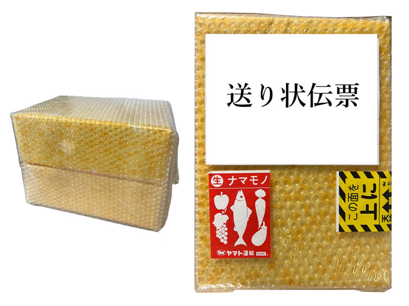 ご自宅へのお届け・手持ちギフトの場合は二重包装をし、商品に直接送り状伝票等を貼ることのないよう対応致します。※二重包装代300円にて対応 手持ちギフトの場合は必ず備考欄にご記入ください。 |