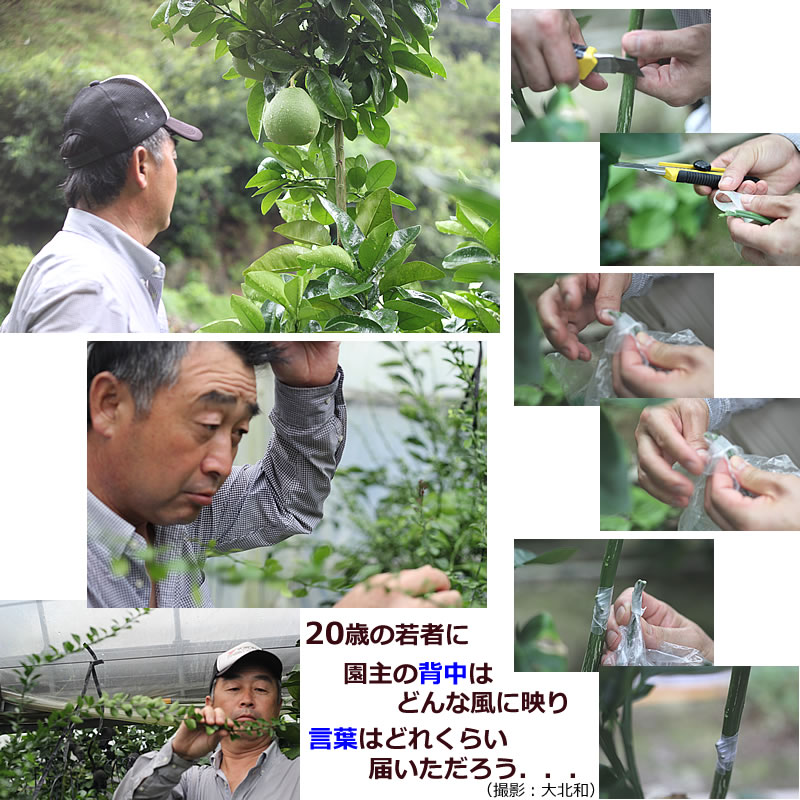 | 文旦への愛は無限大〜3日間のインターシップを振り返って〜 東京農業大学 3年 ポストハーベスト学研究室 大北 和 私は8月20日から8月22日の3日間の土佐市宮ノ内“文旦王国”にある「白木果樹園」でインターシップを行いました。 インターシップをやろうとしたきっかけは。私の実家は高知県にあり両親は土建で祖母が農業を一人でしています。祖母が栽培しているのは果樹で“文旦”と“柚子”(柑橘類)を作っています。私は祖母の後を継ぐ決心をしたのは中学の頃です。高校は農業高校に進み、その後も農業ともっと向き合っていきたいと思い東京農業大学に進学しました。東京農業大学では3年になりそろそろ進路を考えなければならない時期でもあります。私は自分自身を振り返って栽培感覚や経営のノウハウを全く知らないし、果樹(柑橘類)の知識も足らないと思いました。4年になると就職活動や卒業論文で忙しくなり自分のやりたいこともできなくなります。そこで今年の夏はとことん果樹(柑橘)に向き合うこと、また新しく視野を広げる思いでインターシップという形で学ぼうと思いました。 私の故郷である高知県で探そう研修先を探していた時にインターネットで“高知・柑橘”で調べると最初に「白木果樹園」がヒットして、さらに高知県ということでここだ!と思い電話をしました。ここの園主の白木浩一(以下白木さん)さんは私が知っている人の中で一番柑橘に“愛”を注いでいる方でした。全国で唯一四季折々の文旦を生産している人で、また海外にも視野を向けていて色んな品種の柑橘を栽培しており、他にも日頃耳にしないような果樹も栽培していました。初めて白木さんにあった印象は“貫禄”があって“笑顔”が素敵な方だと思いました。奥さんや事務の方々従業員の人たちも皆さん楽しく“笑顔”でお仕事をしていてこんな素敵な職場で働きたいと切実に思いました。 インターシップの内容としては8月の時期なので、摘果・枯れ枝の除去またハウス内の作業としては接ぎ木や夏目の剪定を行いました。その他に時間がある時に果樹園を見回ったりして充実した3日間を過ごしました。 この宮ノ内の文旦の栽培特徴として、傾斜で果樹栽培をしています。それは水はけが良く急斜面で寒暖差を利用でき美味しい果実を実らせることが出来るからです。角度的には大体70度近くの斜面で歩くのにも一苦労でした。筋肉痛もいつもの作業ではならないところが筋肉痛になっていました。笑 私は実家で農作業の手伝いをし、また高校の実習で作業は慣れていると思ったのですが急斜面での作業は疲労があり前まで経験した農作業で一番に辛いものだと実感しました。農業を学んでいない人は摘果や枯れ枝除去また接ぎ木などの作業は聞いたことがない人がほとんどだと思います。農作業は汗にまみれて土にまみれて虫に刺され綺麗なものばかりではないそういう世界があることもインターシップでは学ぶことが出来ました。店頭やネットで販売しているものの多くは色んな人の手が加わって消費者に届きます。自分たちが手にした物の背景に一つこういう現実があることも知るとより食べ物に関して興味深く農業に携わっていけると思います。 私は果樹園を作ることが“夢”です。3日間の作業の間にたくさんの会話をしてその中で『視野が狭いぞ!もっと大きく考えにゃーいかん』という言葉が印象に残っています。 農業は1年1年が新しい出会いで常に前進している。だから、もっと新しい世界感や、農作業している間にも何か発想をしていくGlobal(世界網)でAgriculture Innovation(農業の新しい切り出し)が大切だと言っていました。今回白木果樹園にインターシップにきて思ったことは白木さんの文旦に対する思いはお客さんにも伝わっていて食べている人達をも笑顔にしていることです。生産者と消費者の分類じゃなく文旦を通じて皆さん(文旦に関わる人)全てをまるで愛おしい“文旦”のように接しているからです。 タイトルに書いていますが“文旦への愛は無限大”白木さんのプロフェッショナルな考えや白木果樹園さんの温かさを実感したい方、いや同じ学生の方にはぜひ体験して欲しいと思います。“ブンタンマン”が優しく寛大に迎え入れてくれます。笑 「農業はなにがあるか分からん毎日が勉強よぅ〜」私はインターシップで農業が楽しいまた農業が好きになれた3日間でした。 また来たいです!ありがとうございました!! (原文のまま) |