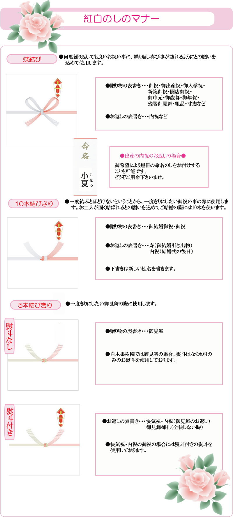 白木果樹園オリジナル包装紙での包装や、ご利用場面に合わせたお熨斗をご用意しております。