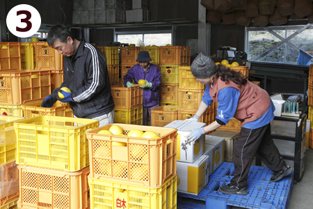 1月 お正月休みもそこそこに、年末から始まった土佐文旦の収穫を、年明け早々から行います。 美味しくなれ美味しくなれ、と気持ちを込めて、文旦を野囲いの室へ寝かせます。 |